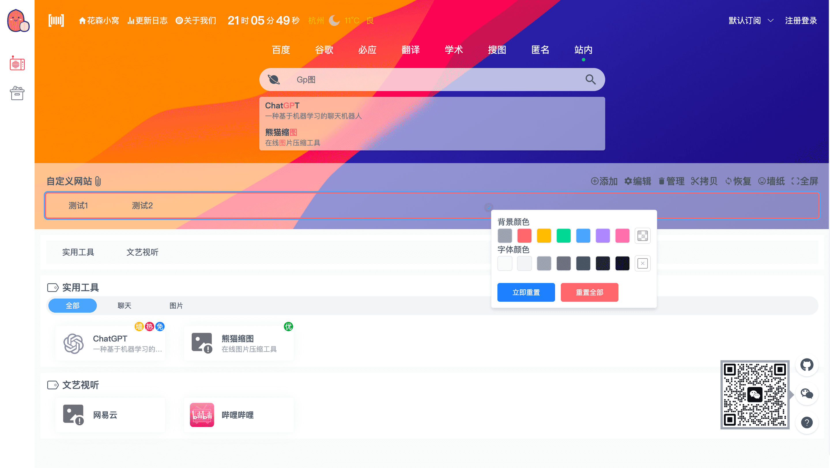 - 支持极简模式、任意区域右键换肤改色、更换预设墙纸、修改模糊度、调节明暗、上传壁纸的功能;