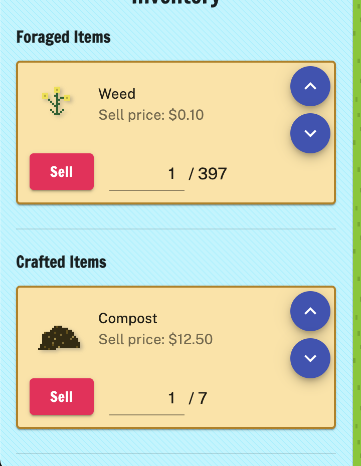 - weeds grow randomly overnight in unoccupied plots - weeds can be turned into compost through crafting - compost acts like fertilizer
