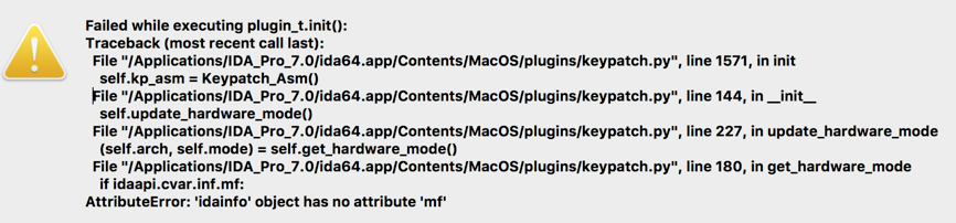 * fixed inf no attribute "mf", because ida pro beta 3 (170724) renamed inf.is_mf()/set_mf() -> is_be()/set_be() * fixed inf no attribute "mf", because ida pro beta 3 (170724) renamed inf.is_mf()/set_mf() -> is_be()/set_be() * fixed inf no attribute "mf", because ida pro beta 3 (170724) renamed inf.is_mf()/set_mf() -> is_be()/set_be() * fixed inf no attribute "mf", because ida pro beta 3 (170724) renamed inf.is_mf()/set_mf() -> is_be()/set_be() * fixed inf no attribute "mf", because ida pro7 beta 3 (170724) renamed inf.is_mf()/set_mf() -> is_be()/set_be() * fixed inf no attribute "mf", because ida pro7 beta 3 (170724) renamed inf.is_mf()/set_mf() -> is_be()/set_be() * fixed inf no attribute "mf", because ida pro7 beta 3 (170724) renamed inf.is_mf()/set_mf() -> is_be()/set_be() * fixed inf no attribute "mf", because ida pro7 beta 3 (170724) renamed inf.is_mf()/set_mf() -> is_be()/set_be() * Add ida pro version check, about be(big endian) * Add ida pro version check, about be(big endian) * Add ida pro version check, about be(big endian) * Add ida pro version check, about be(big endian) * Since ida pro7 beta 3 (170724) renamed inf.mf -> is_be()/set_be(), Compatible with ida pro 6, 7(beta); for everyone is happy * Since ida pro7 beta 3 (170724) renamed inf.mf -> is_be()/set_be(), Compatible with ida pro 6, 7(beta); for everyone is happy * Since ida pro7 beta 3 (170724) renamed inf.mf -> is_be()/set_be(), Compatible with ida pro 6, 7(beta); for everyone is happy * Since ida pro7 beta 3 (170724) renamed inf.mf -> is_be()/set_be(), Compatible with ida pro 6, 7(beta); for everyone is happy * Fixed inf has no attribute "mf" (#25) * fixed inf no attribute "mf", because ida pro beta 3 (170724) renamed inf.is_mf()/set_mf() -> is_be()/set_be() * fixed inf no attribute "mf", because ida pro7 beta 3 (170724) renamed inf.is_mf()/set_mf() -> is_be()/set_be() * Add ida pro version check, about be(big endian) * Since ida pro7 beta 3 (170724) renamed inf.mf -> is_be()/set_be(), Compatible with ida pro 6, 7(beta); for everyone is happy * Minor bug fixes and code cleanup (#26) * 1. fixed ida pro 7 beta6 x86 crash. idainfo object has no attribute 'procname' 2. refactor: removed "from idc_bc695" According to hexray log document, idc has been done on the adapter idc_bc695, do not need to expose idc_bc695. 3. refactor: removed the adapter idaapi.read_selection. idaapi.read_selection has been adapted internally * 1. fixed ida pro 7 beta6 x86 crash. idainfo object has no attribute 'procname' 2. refactor: removed "from idc_bc695" According to hexray log document, idc has been done on the adapter idc_bc695, do not need to expose idc_bc695. 3. refactor: removed the adapter idaapi.read_selection. idaapi.read_selection has been adapted internally * 1. fixed ida pro 7 beta6 x86 crash. idainfo object has no attribute 'procname' 2. refactor: removed "from idc_bc695" According to hexray log document, idc has been done on the adapter idc_bc695, do not need to expose idc_bc695. 3. refactor: removed the adapter idaapi.read_selection. idaapi.read_selection has been adapted internally * 1. fixed ida pro 7 beta6 x86 crash. idainfo object has no attribute 'procname' 2. refactor: removed "from idc_bc695" According to hexray log document, idc has been done on the adapter idc_bc695, do not need to expose idc_bc695. 3. refactor: removed the adapter idaapi.read_selection. idaapi.read_selection has been adapted internally * 1. fixed ida pro 7 beta6 x86 crash. idainfo object has no attribute 'procname' 2. refactor: removed "from idc_bc695" According to hexray log document, idc has been done on the adapter idc_bc695, do not need to expose idc_bc695. 3. refactor: removed the adapter idaapi.read_selection. idaapi.read_selection has been adapted internally * 1. fixed ida pro 7 beta6 x86 crash. idainfo object has no attribute 'procname' 2. refactor: removed "from idc_bc695" According to hexray log document, idc has been done on the adapter idc_bc695, do not need to expose idc_bc695. 3. refactor: removed the adapter idaapi.read_selection. idaapi.read_selection has been adapted internally * 1. fixed ida pro 7 beta6 x86 crash. idainfo object has no attribute 'procname' 2. refactor: removed "from idc_bc695" According to hexray log document, idc has been done on the adapter idc_bc695, do not need to expose idc_bc695. 3. refactor: removed the adapter idaapi.read_selection. idaapi.read_selection has been adapted internally * 1. fixed ida pro 7 beta6 x86 crash. idainfo object has no attribute 'procname' 2. refactor: removed "from idc_bc695" According to hexray log document, idc has been done on the adapter idc_bc695, do not need to expose idc_bc695. 3. refactor: removed the adapter idaapi.read_selection. idaapi.read_selection has been adapted internally * Merge branch 'master' of https://github.com/fjh658/keypatch * Merge branch 'master' of https://github.com/fjh658/keypatch * Merge branch 'master' of https://github.com/fjh658/keypatch * Merge branch 'master' of https://github.com/fjh658/keypatch * Merge branch 'master' of https://github.com/fjh658/keypatch * Merge branch 'master' of https://github.com/fjh658/keypatch * Merge branch 'master' of https://github.com/fjh658/keypatch * Merge branch 'master' of https://github.com/fjh658/keypatch * Merge branch 'master' of https://github.com/fjh658/keypatch * Merge branch 'master' of https://github.com/fjh658/keypatch * Update the installation documentation for the macOS ida * Improve the accuracy of the documentation * Fixed the form cannot be shown for ida pro 7.2 beta Version 7.2.181019. "form: error at %/"