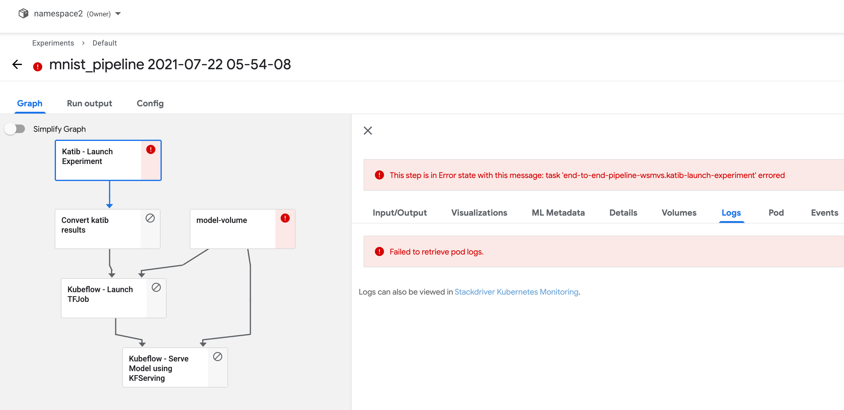 Thank you @andreyvelich for the change! I redeployed a cluster to validate the E2E workflow, I encountered the following issue in the first step: How to look closer for the log to debug further? |