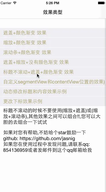 - 2016/05/27 增加了一个style属性 segmentViewBounces, 来设置segmentView是否有弹性
