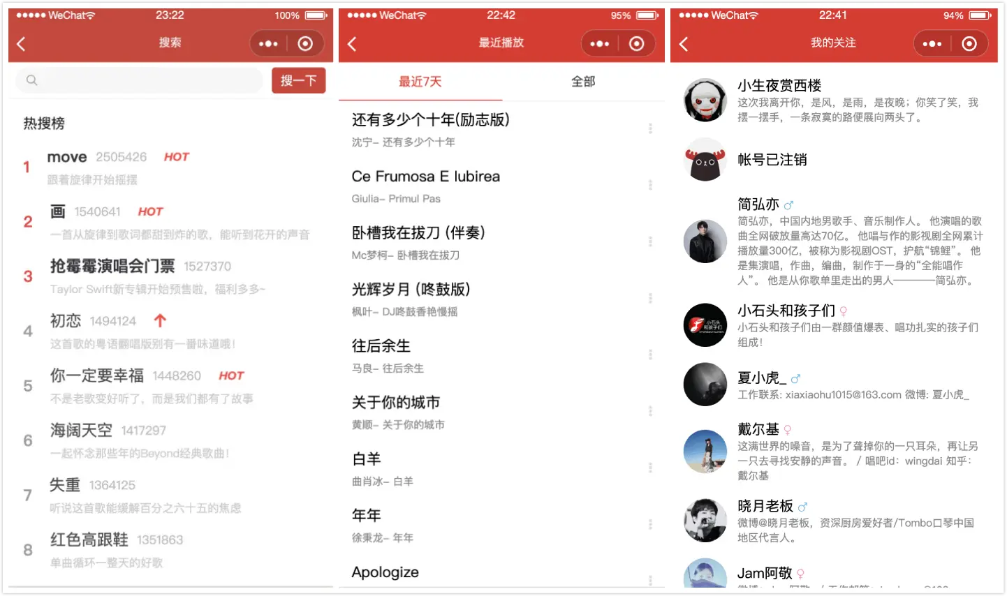 - 搜索(包含单曲/歌单/视频/歌手/专辑/电台/用户)
