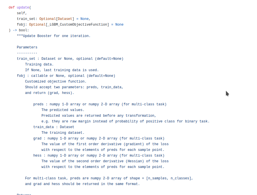 While the python API supports a third argument, the y_hat predictions: