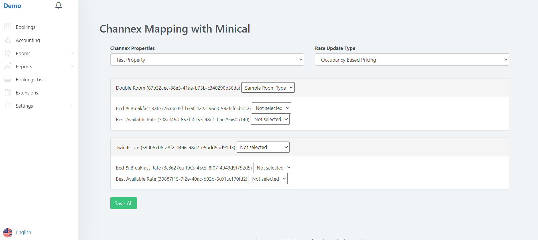 - Fork the repository https://github.com/minical/channex-integration or clone it locally, or you can get this extension from miniCal MarketPlace.