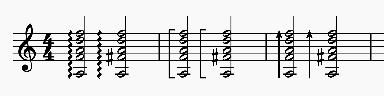 The presence of an accidental creates too much extra space between an arpeggio line and the following chord. (This affects all vertical lines from the Arpeggios/Glissandos palette, not just the standard wiggle.)