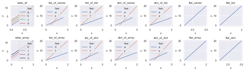 Here is an example showing the new behavior of relational plots with "wide-form" inputs: