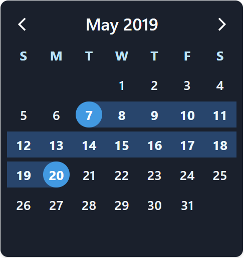 An elegant calendar and datepicker plugin for Vuejs. npm i --save v-calendar Documentation For full documentation, visit vcalendar.io. Attributes Highlights Dots Bars Popovers Multi-Paned Calendars Theme Colors & Dark-Mode Date Pickers Single Date Multiple Date Date Range Custom Calendars w/ Scoped Slots