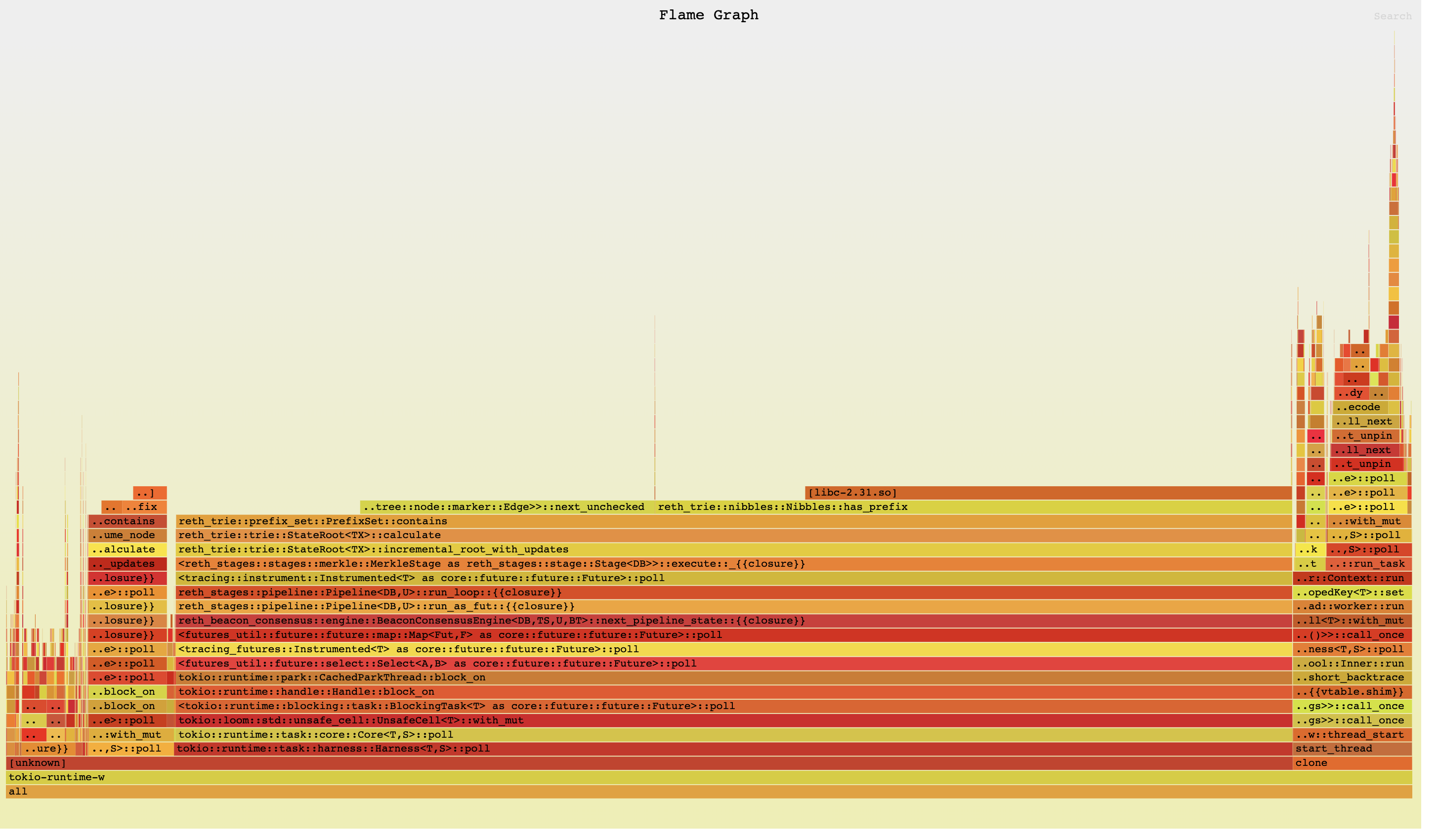 Incremental state root calculation takes a lot of time. Flamegraph showed that most of the time is spent on