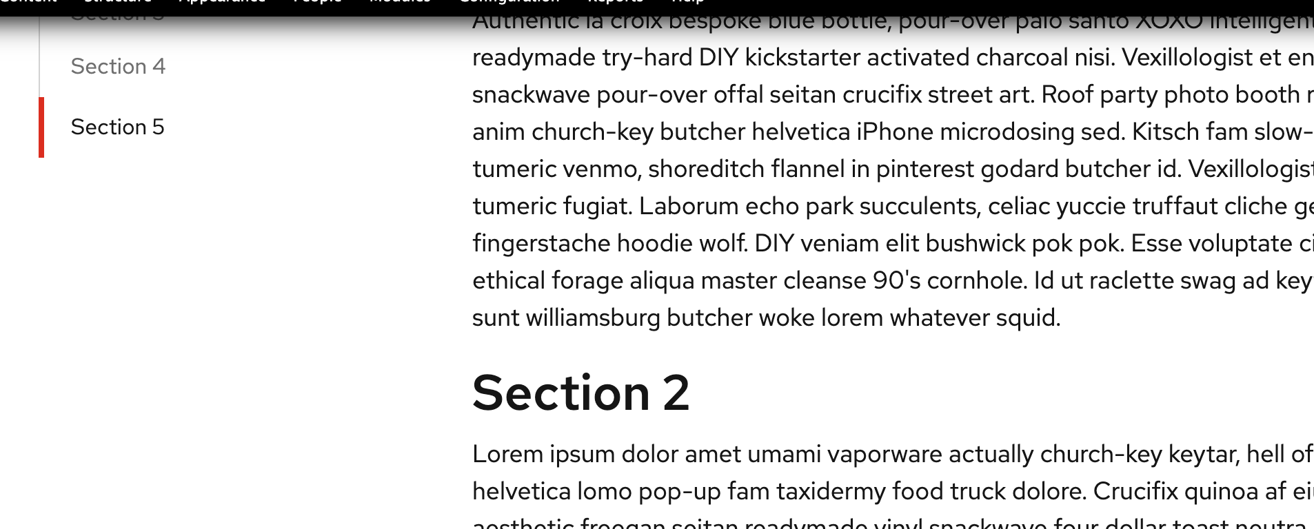<h1 class="pfe-jump-links-panel__section" id="section2">Section 2</h1>