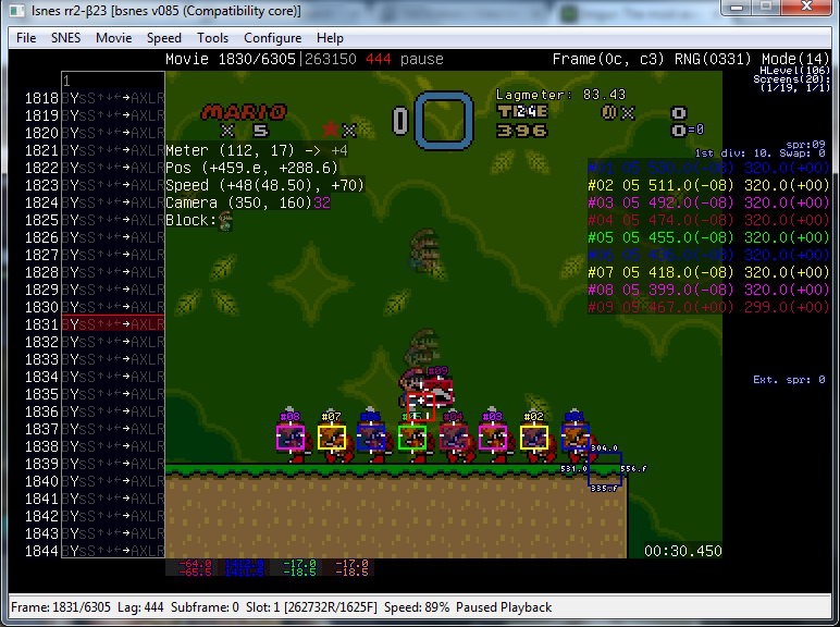smw-tas is an utility for making Tool-Assisted Speedruns of Super Mario World and for debugging the game. The script can be run on the emulators: lsnes and Snes9x-rr.