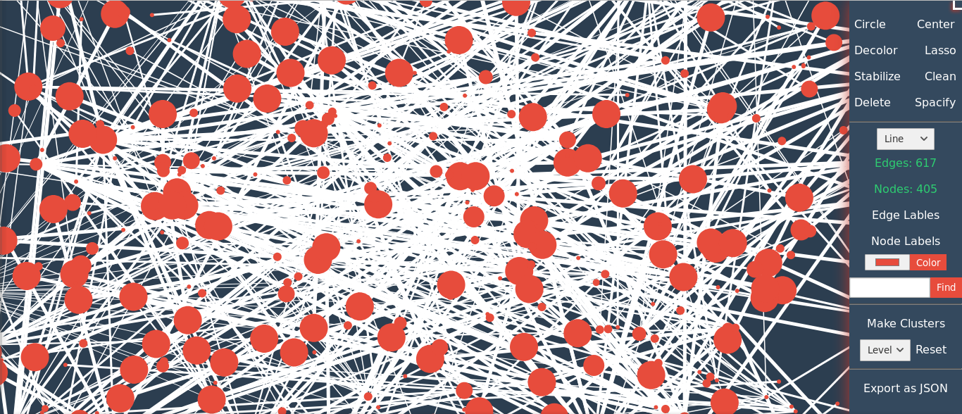 Select the Make Clusters option to form clusters using community detection algorithm. After that, you can use Color Clusters to give different colors to each community and then use Spacify option to fix overlapping nodes & edges.