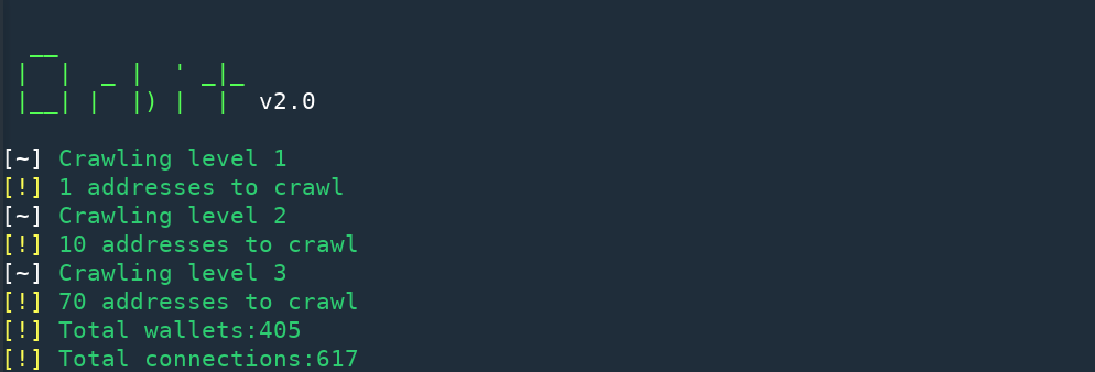 Wallets that have made just a couple of interactions with our target may not be important, Orbit can be told to crawl top N wallets at each level by using the -t