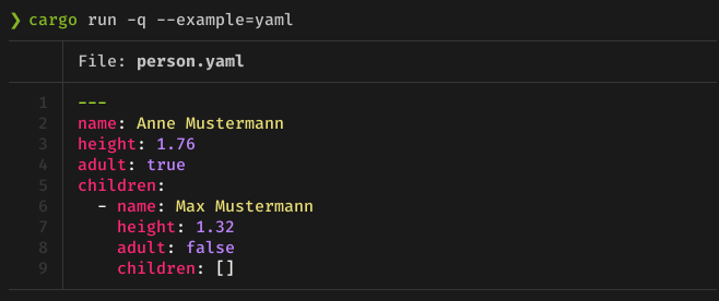 examplesfolder for more):simple.rscat.rsyaml.rsadvanced.rscloses #884