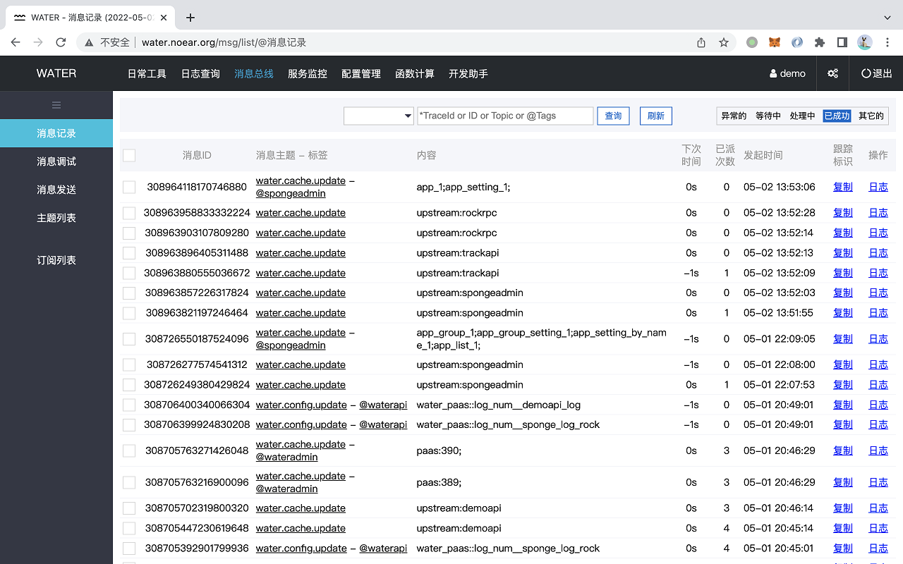 地址: http://water.noear.org (账号:demo ;密码:demo )