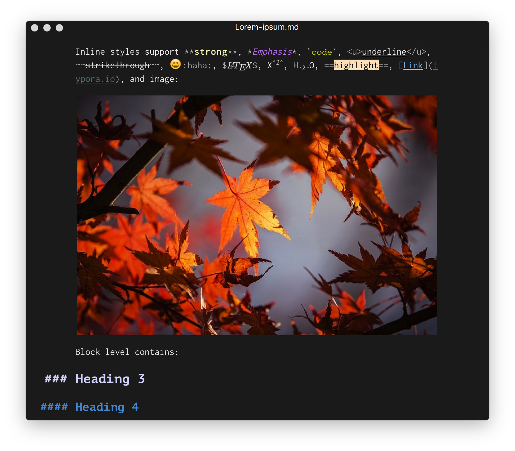 It is a coder-friendly theme which will display the rendered Markdown close to its un-rendered source code. It will display most Markdown syntax as it is, yet also displays rendered images, tables, table of contents, etc.