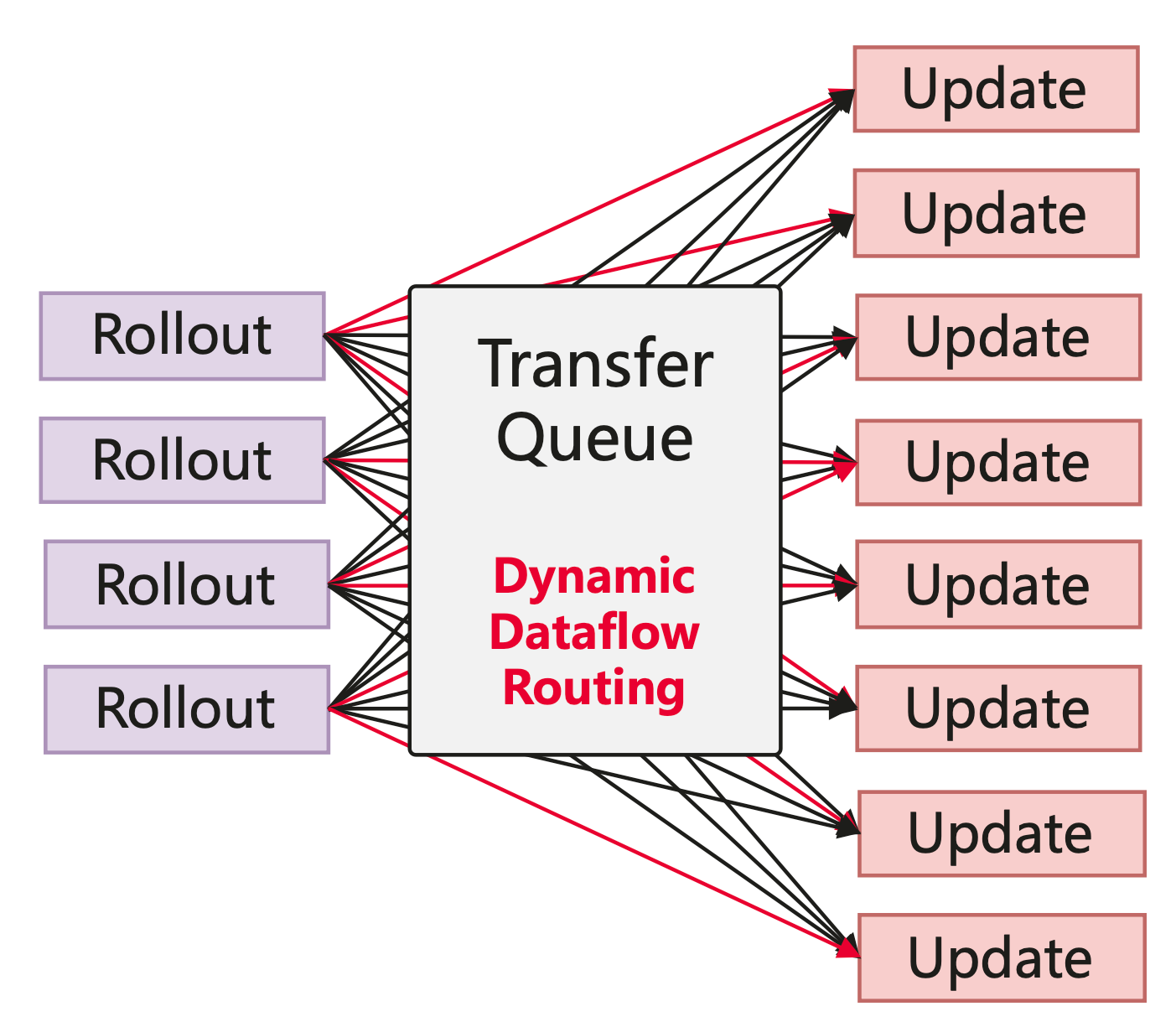 To address this challenge, we propose a centralized streaming data management module named TransferQueue to route fine-grained data dependencies across RL tasks dynamically.