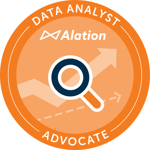 Description: Alation Data Steward badge holders have demonstrated that they have foundational knowledge and fundamental understanding of the Steward role including... Read more here Skills: Data Analyst, Data Catalog, Data Community, Data Culture, Data Curation Criteria: Stewardship of the data catalog is a key function in driving the adoption of the data catalog as well as... Read more here Time to Earn: Hours Level: Foundational |