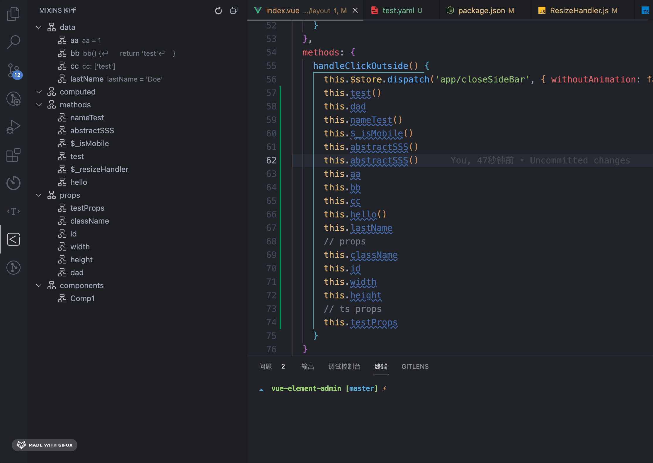 vscode:插件中直接搜索Vue2 Mixins Components Helper安装即可