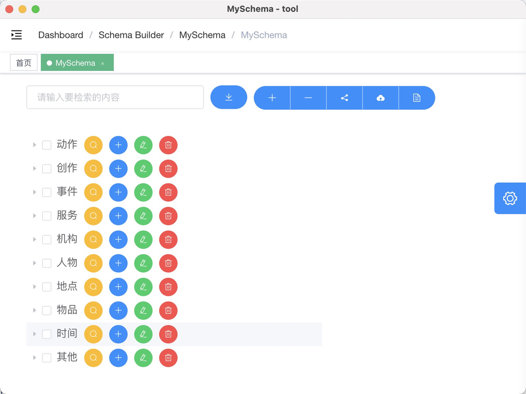 cnschema属性表-支持搜索、查看的功能,可以勾选部分属性导出到Myschema属性表中对其进行编辑